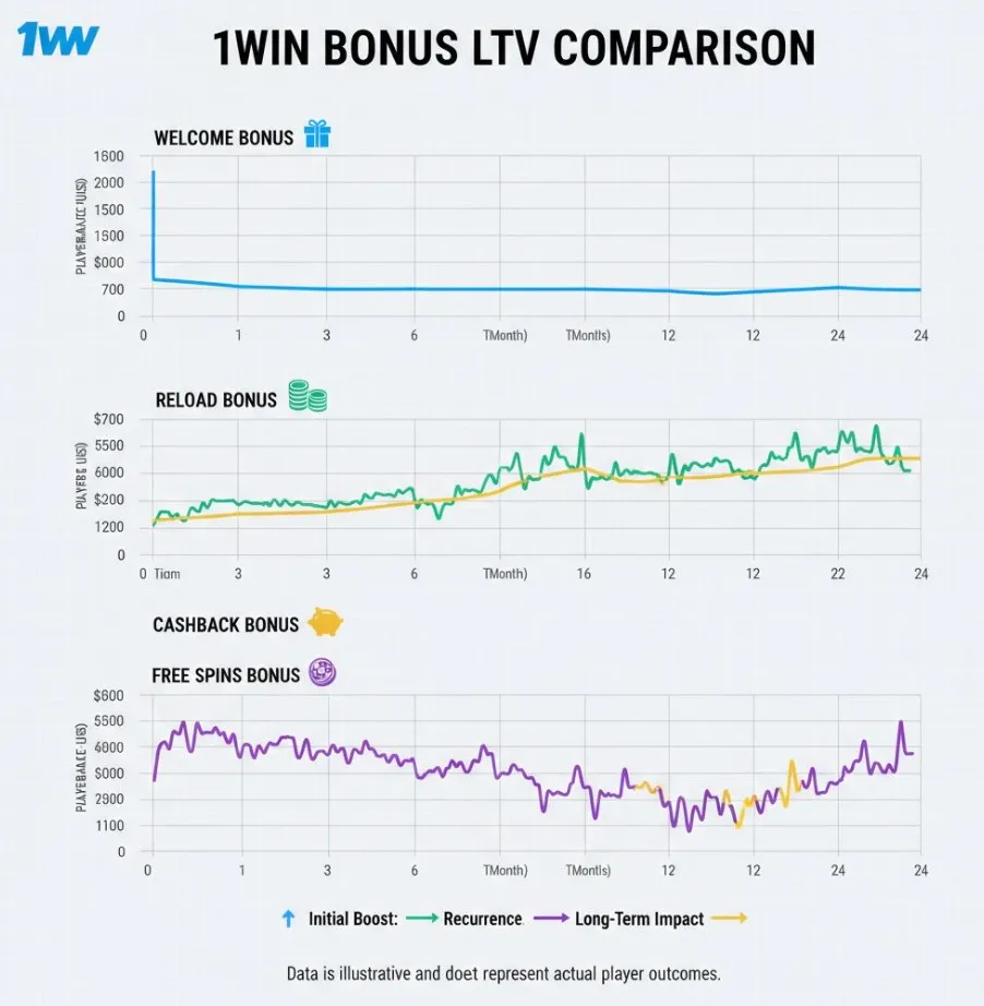 This table emphasizes that while welcome bonuses offer a large upfront sum, other recurring bonuses like reloads and cashback significantly contribute to overall LTV.